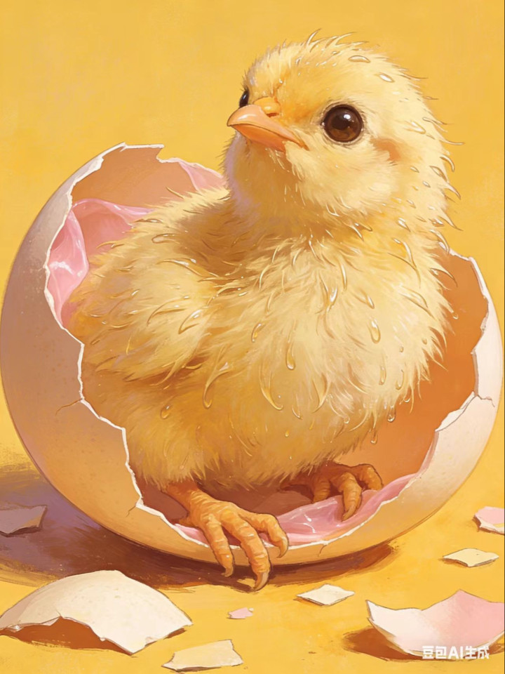 最难忘的,是小鸡从蛋壳里出来的那几天。时常,有小鸡啄开蛋壳,从鸡娘的翅膀下钻出来了。母亲看到,赶紧把它捧进腰子形饭桶。有时,小鸡已经在蛋壳里轻声叫唤,但没有力气啄壳。母亲把它们放进温水里,提升它的热力。果真,它一口接一口地啄开蛋壳,很快立在母亲掌心里了。